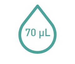 Sólo 70 μL de muestra: Un volúmen mínimo de muestra hace que la prueba sea más cómoda..