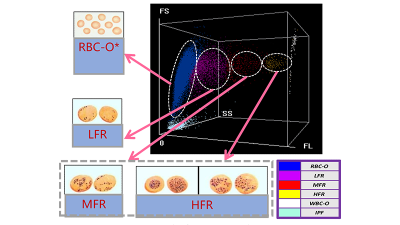 Las fracciones MFR y HFR representan la proporción de reticulocitos que contienen la mayor cantidad de ARN: se trata de reticulocitos jóvenes e inmaduros. El parámetro IRF (fracción de reticulocitos inmaduros) se define como un reflejo del proceso de maduración de los reticulocitos.