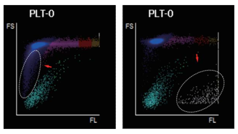 - La fluorescencia óptica reduce eficazmente las interferencias de los agregados plaquetarios y garantiza un recuento preciso de las plaquetas.