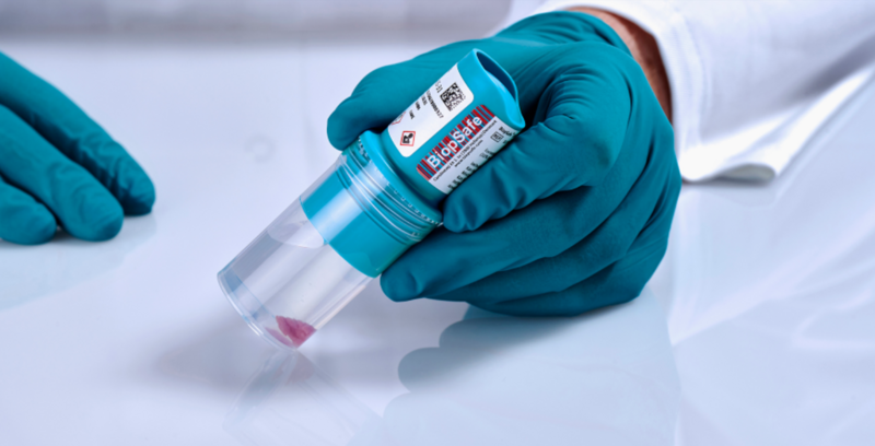 BiopSafe es un nuevo recipiente diseñado para la conservación y transporte de muestras de biopsias. Dotada de un sistema totalmente hermético, lleva incorporado y encapsulado el formaldehído evitando cualquier tipo de fugas del mismo haciendo de este un método fácil, rápido y, por tanto, 100% seguro.